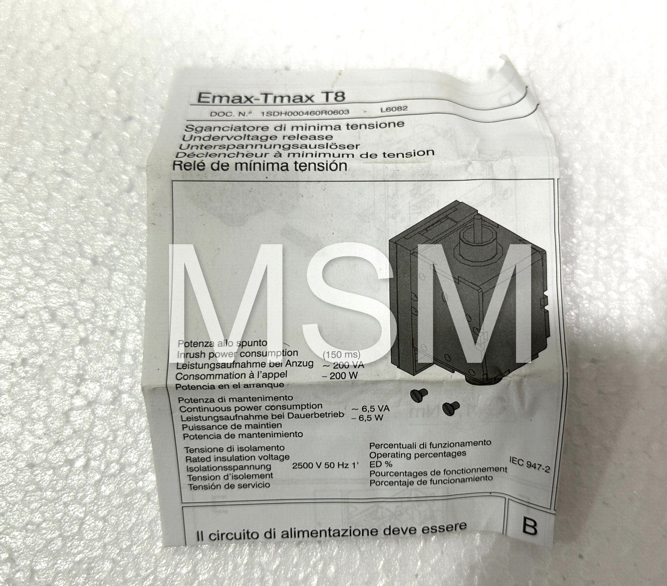 ABB 1SDA038312R1 Under Voltage Release 220-240V
