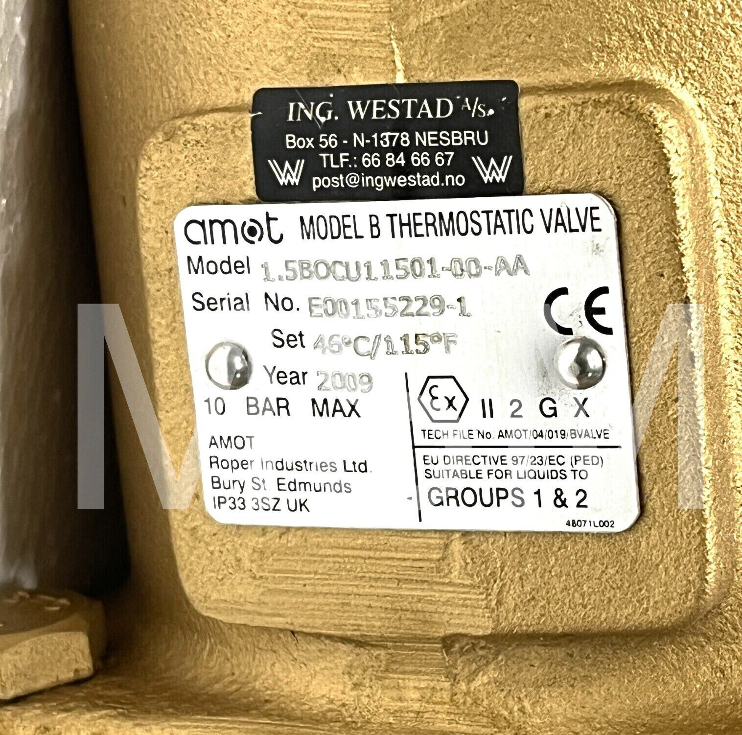 Amot Model B Thermostatic 3-Way Control Valve 1.5BOCU11501-00-AA