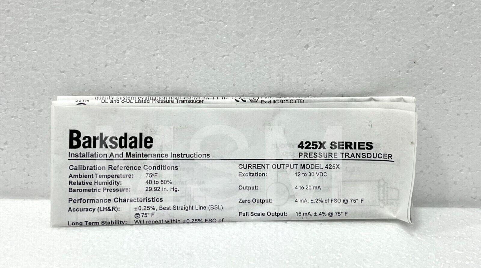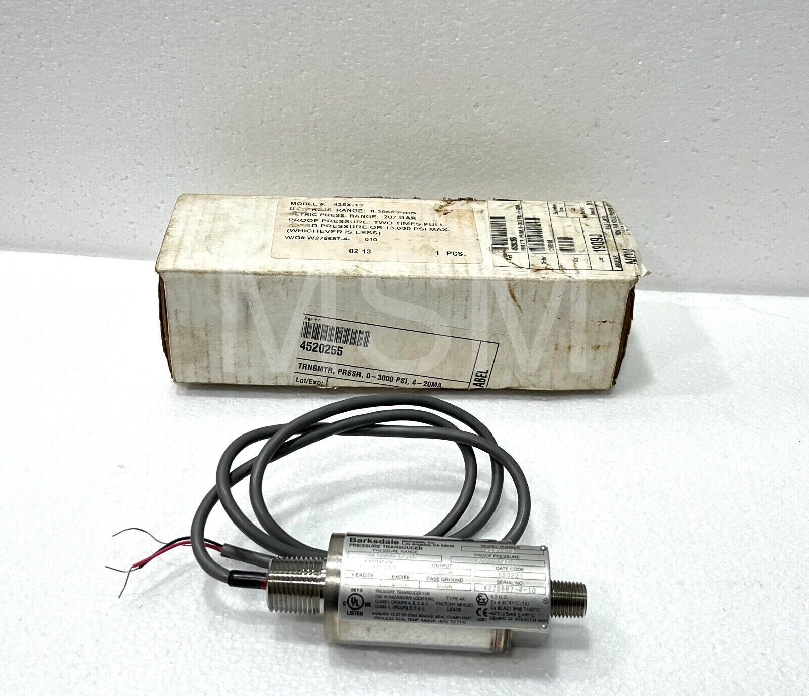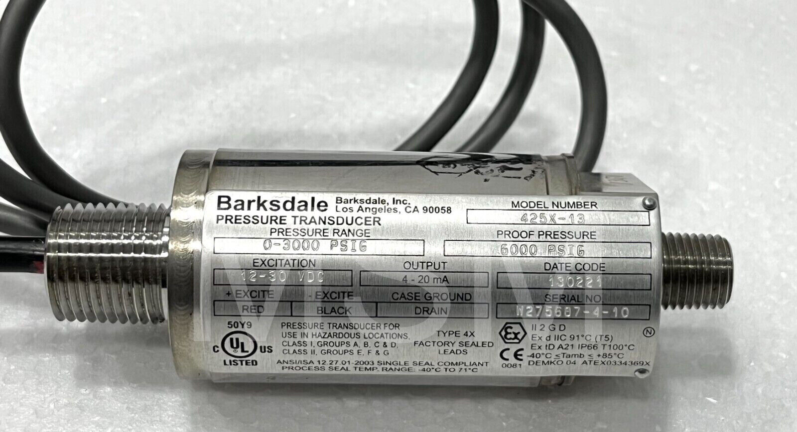Barksdale 425X-13 ATEX Pressure Transducer 0-3000 psi 4~20mA