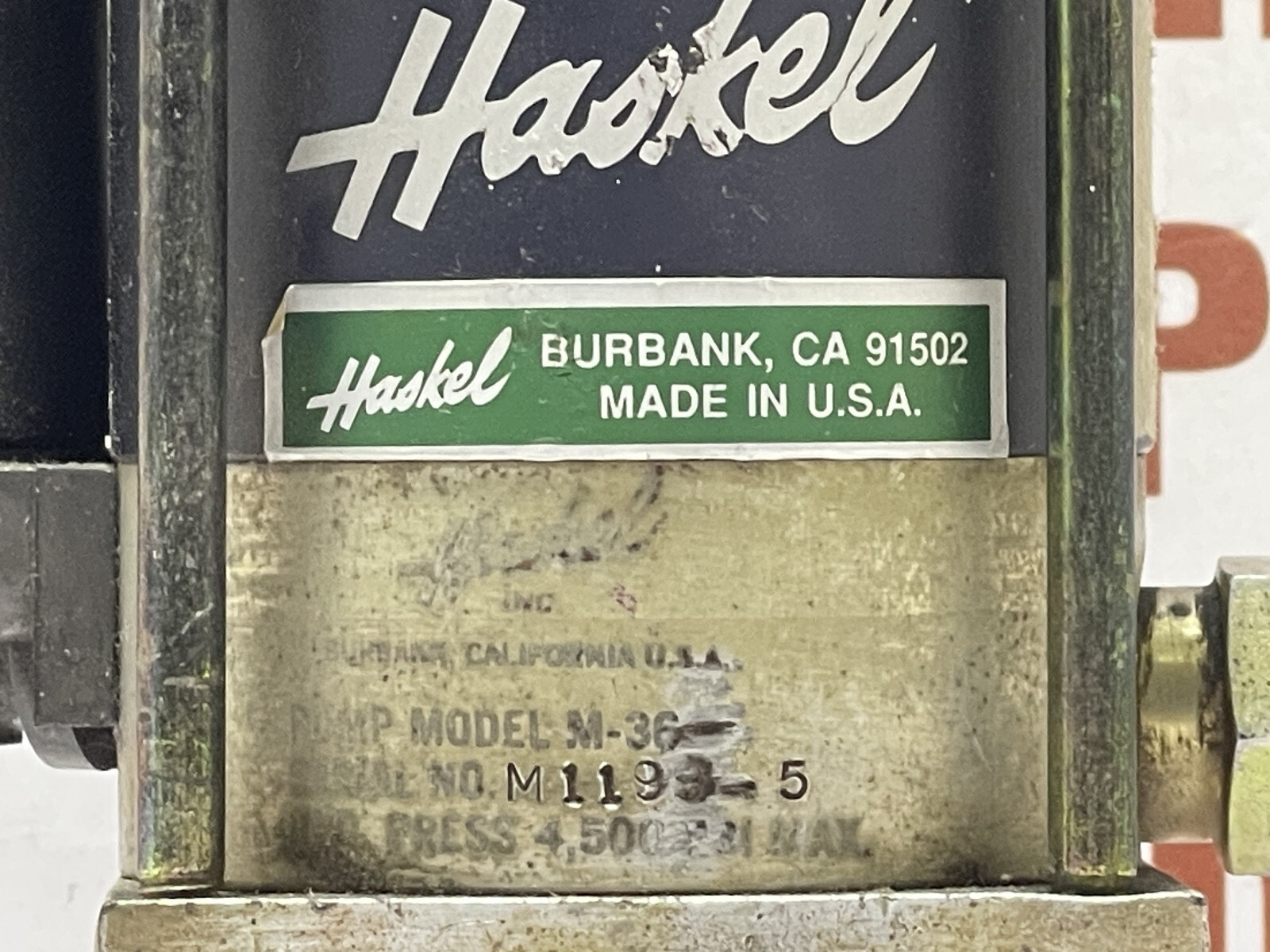 HASKEL M-36 Air Operated Liquid/Liquid Pump, 4500 PSI Max