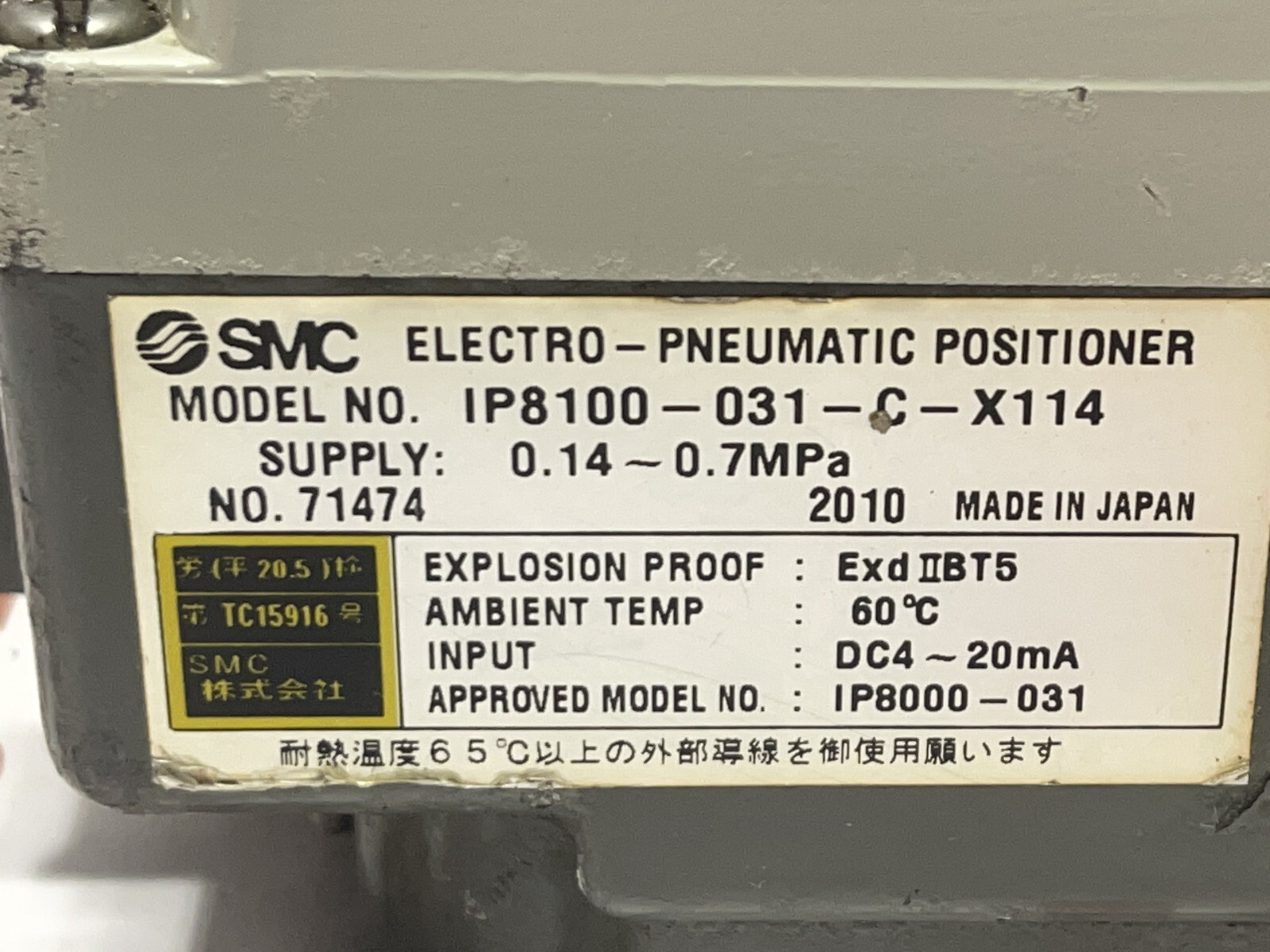 SMC IP8100-031-C-X114 Electro Pneumatic Positioner